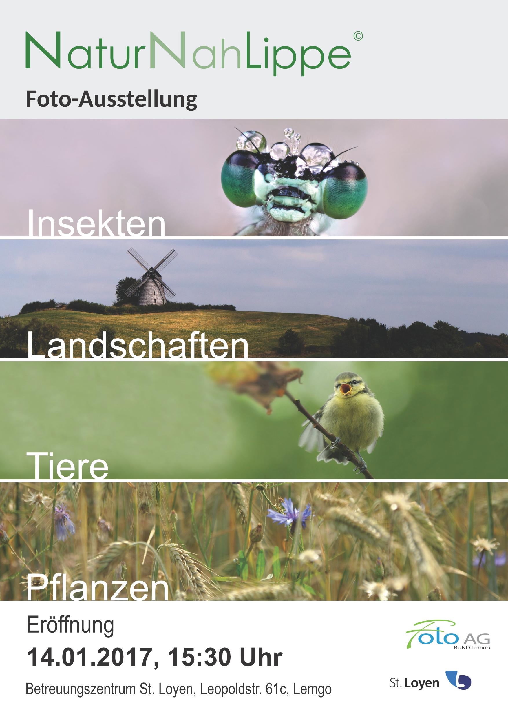 Am 14. Januar 2017 wird im Betreuungszentrum St. Loyen zu Lemgo, Leopoldstraße 61c, die Foto-Ausstellung der FotoAG des BUND Lemgo, um 15.30 Uhr eröffnet. Gäste sind herzlich willkommen. Die Ausstellung ist während der üblichen Öffnungszeiten zu besuchen.